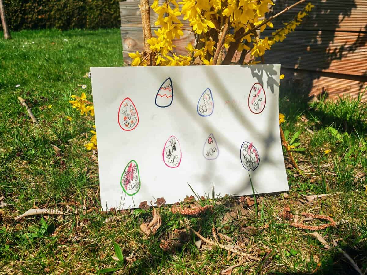 Das hier geht schnell, macht tolle Bilder und wenn du magst, kannst du die gestempelten Eier im Nachgang sogar noch richtig aufhübschen. Zum Beispiel mit Filzstiften oder Naturmaterialien, die du dazu klebst.